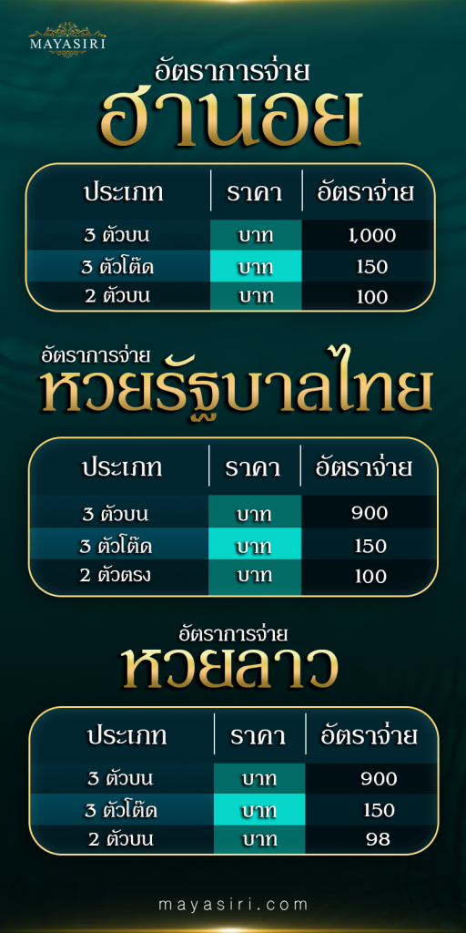 | เลือก MAYASIRI เว็บหวยออนไลน์ที่พร้อมตอบโจทย์ทุกความต้องการของคอหวยชาวไทย สมัครวันนี้เพื่อสัมผัสประสบการณ์การแทงหวยที่ดีที่สุด |